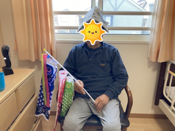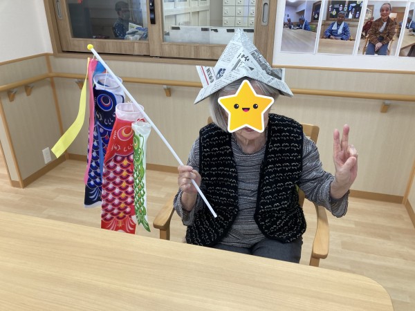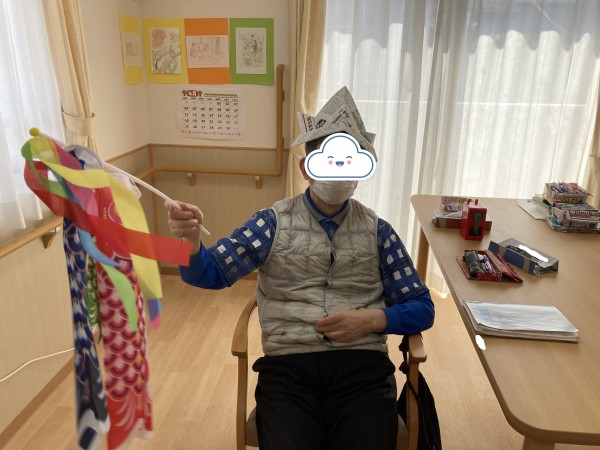 新聞紙の兜を作り、入居者様達に被って頂きました!