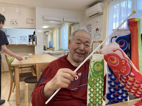 鯉のぼりをお渡しすると「まあ!綺麗だね~!」と言われてニッコリとピースサインを出して喜んでくれました(^_^)v