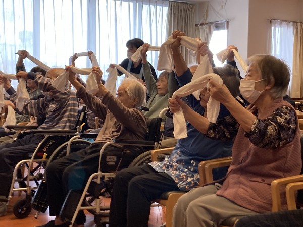 AKタオル体操に皆様熱心に取り組んでおられます(*^^)v