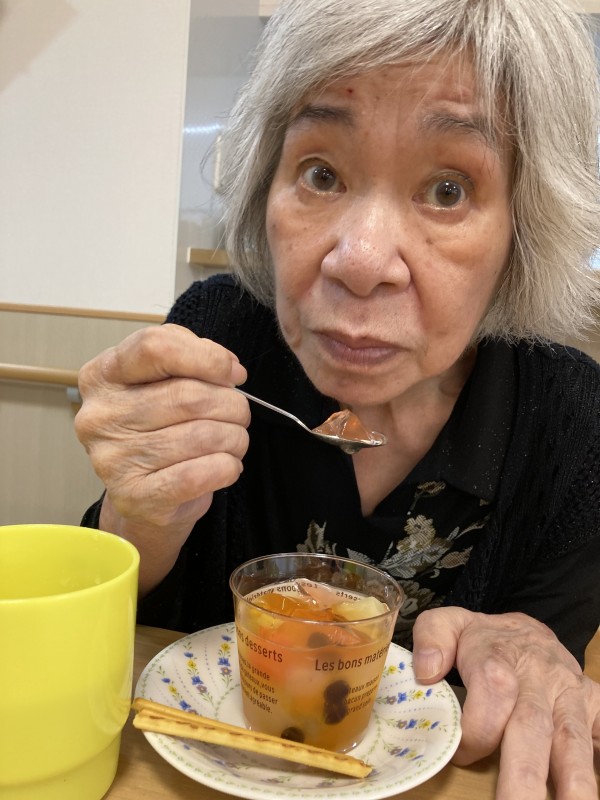 今日のおやつレクはフルーツみつ豆!!!