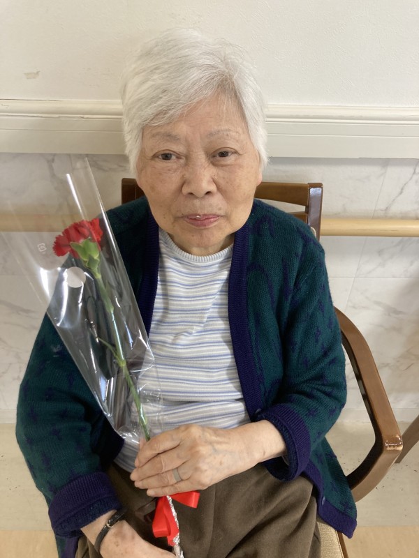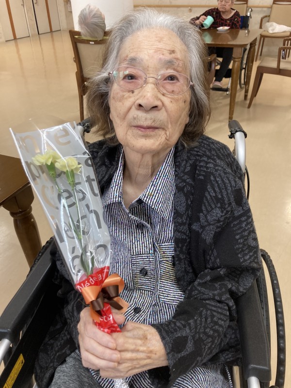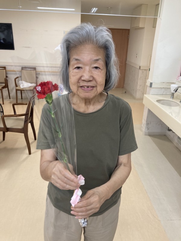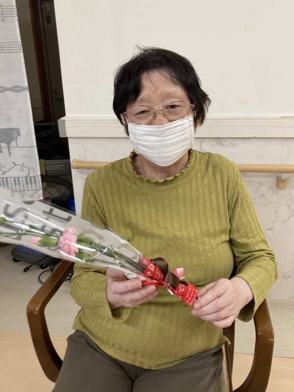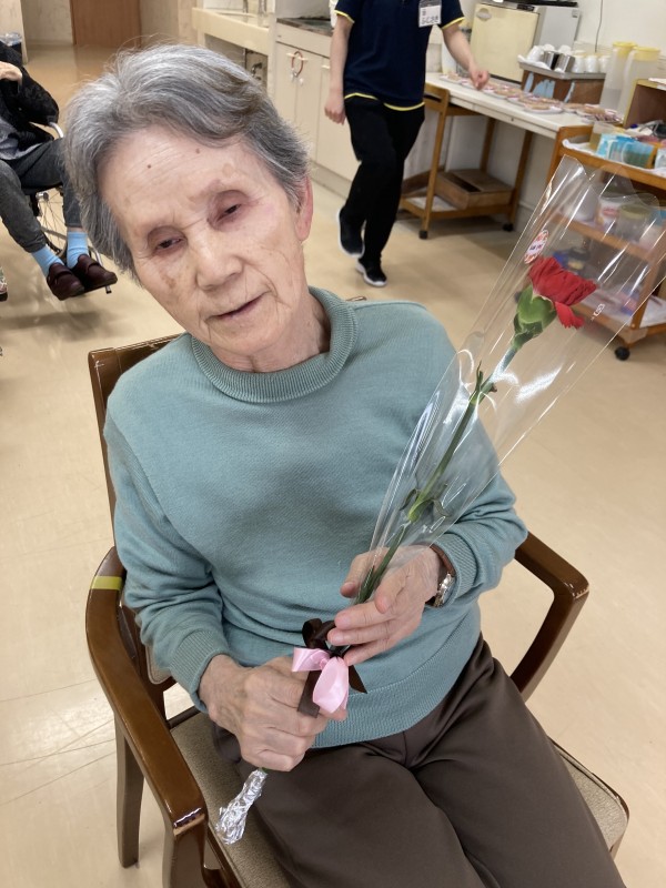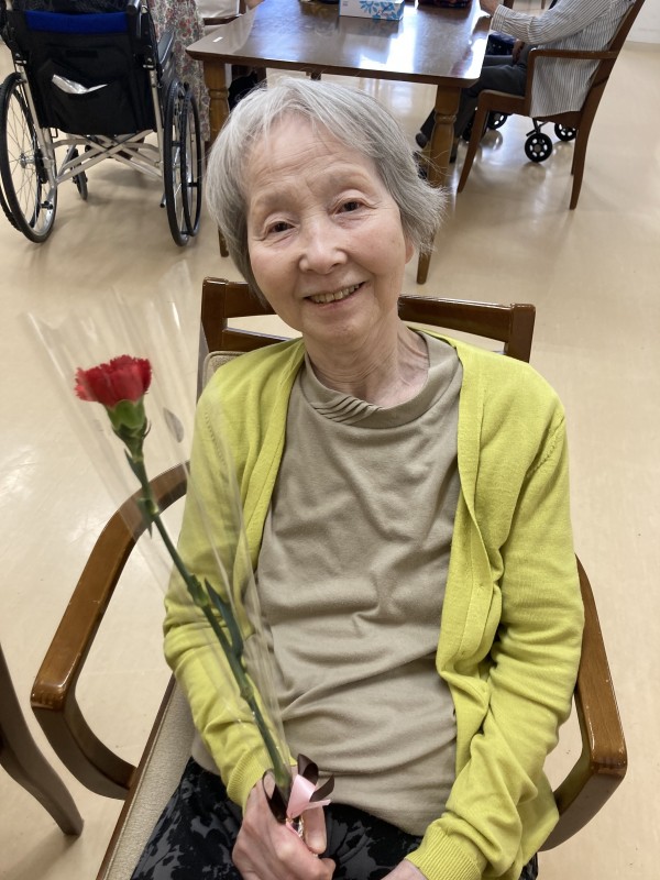 同じ文言になってしまいますが、3階の女性ご利用者様のカーネーションを受け取った時の