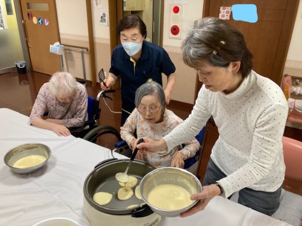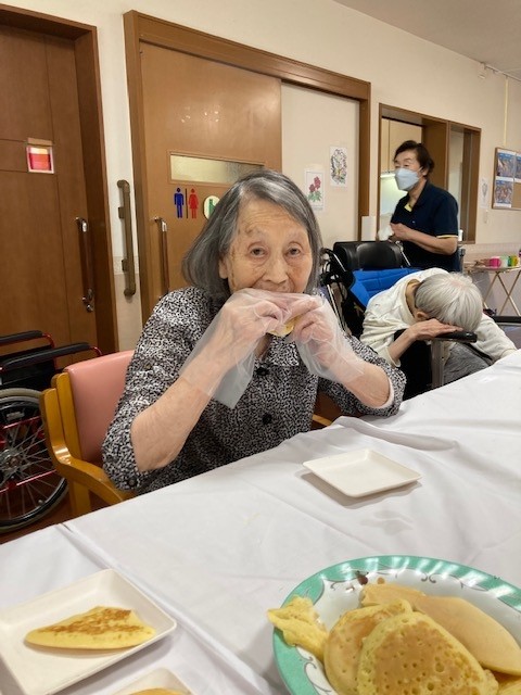 レクリエーションとしてホットケーキミックスを使用してのどら焼きづくりを行いました。