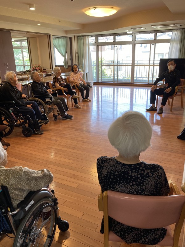ここのところ、リモートによる体操を受けられていましたが、本日は講師の岡田様が直接訪問してくださり、