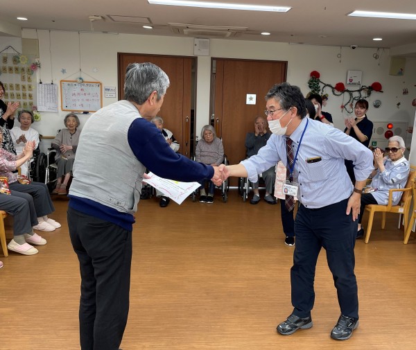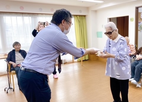 ホーム長から「賞状」と「お菓子のトロフィー」が授与されました♪