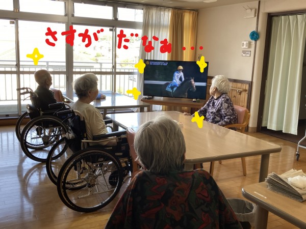 武豊騎手の追い上げに、ご入居者様も「オォォォォ!!!」