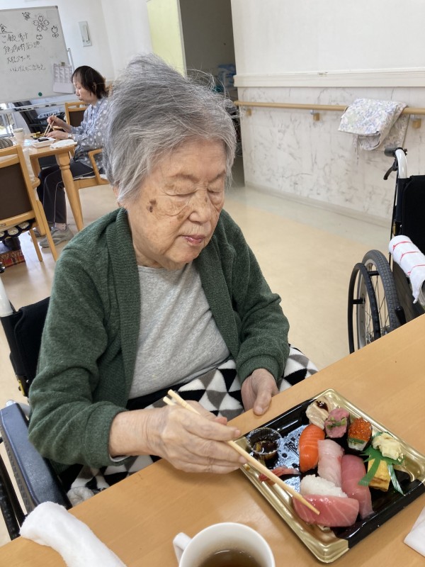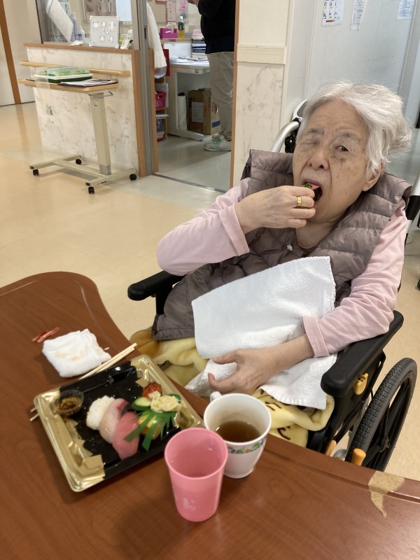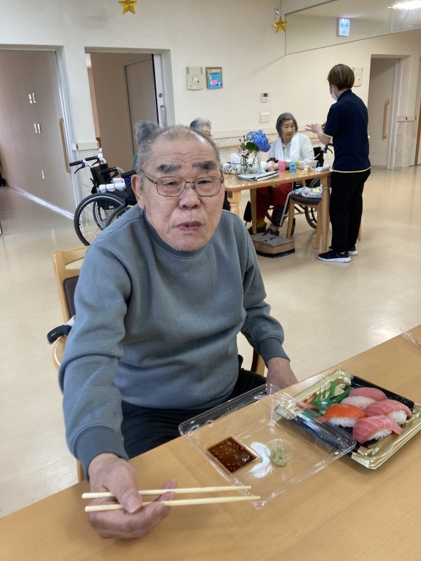 ご利用者様に何が食べたいかお聞きしたところ、「お寿司かな?」とのご意見が多数いらっしゃいました。