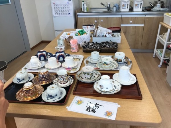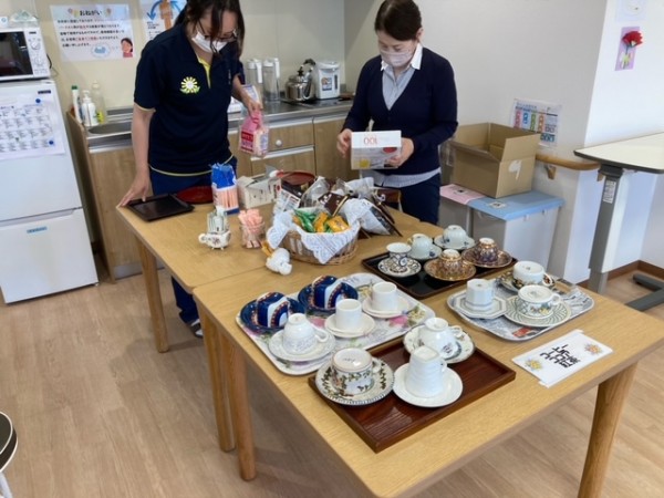 いいコーヒーの香ばしい匂いでいっぱいです。ご利用者様に好きなコーヒーカップを選んでいただき、召し上がっていただきました。