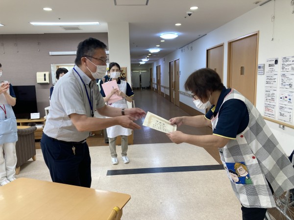 本日、夜勤明けの10年表彰のHさん、早番に来た5年表彰のNさんも