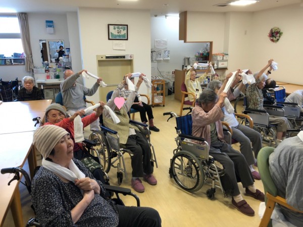 お客様からの人気の高い、タオル体操(/・ω・)/