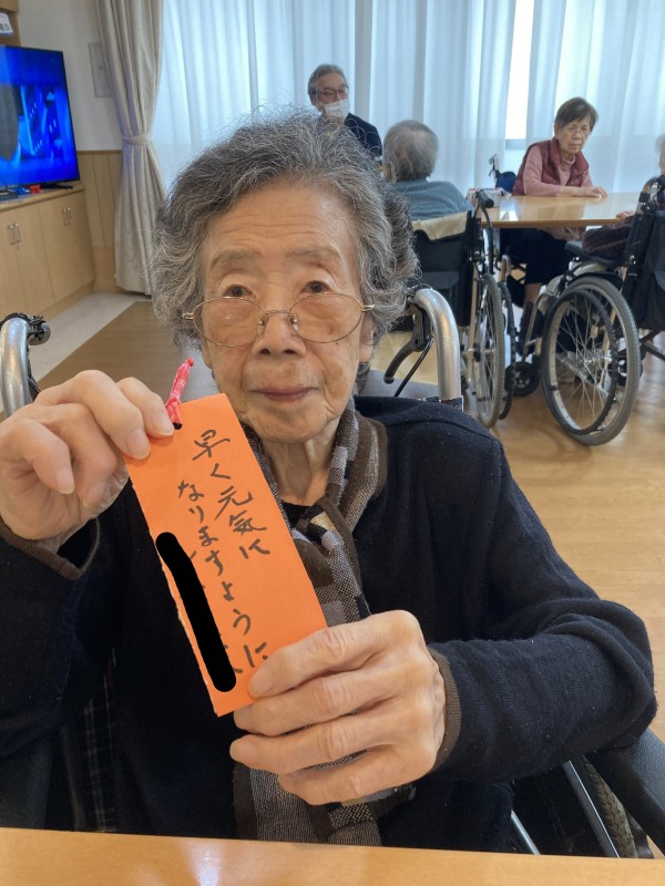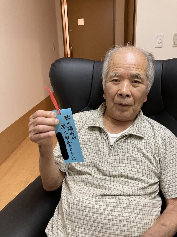 アイスの後は短冊にお願い事を書きました。願い事が叶う様、我々職員も一緒にお願いをしましたしこれでバッチリですね。