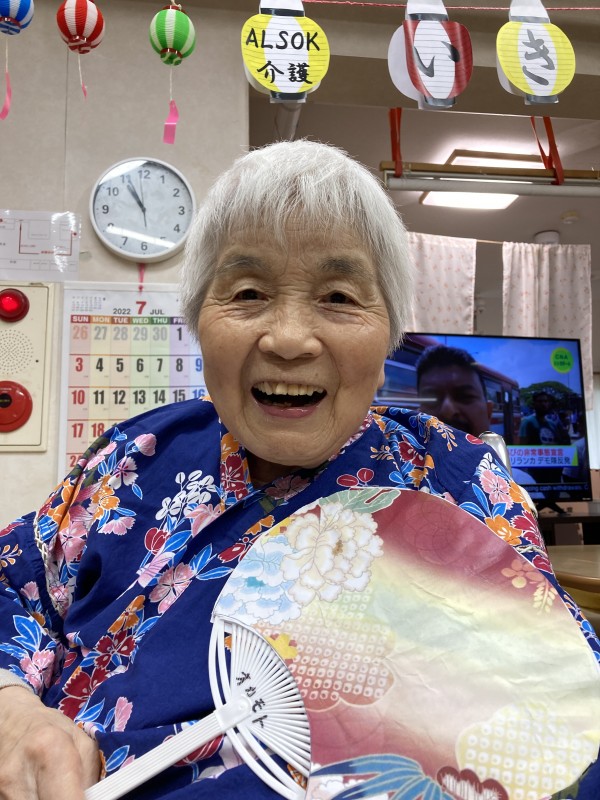 2階の皆様は、盆踊りと聞いて、甚平を着て、ねじりハチマキにうちわをもってやる気満々です。