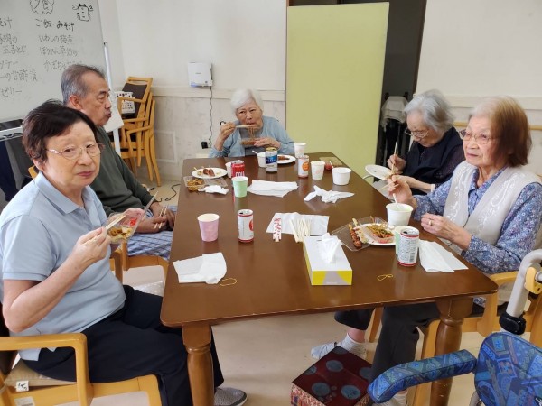 準備の段階からご利用者様のそわそわ感が伝わってきます。匂いにつられて様子を見に来るご利用者様も(笑)