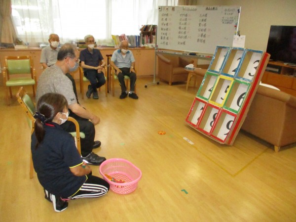 こんにちは、デイサービスセンター遊・西東京です。今日の運動レクレーションは『ストラックアウト』です。