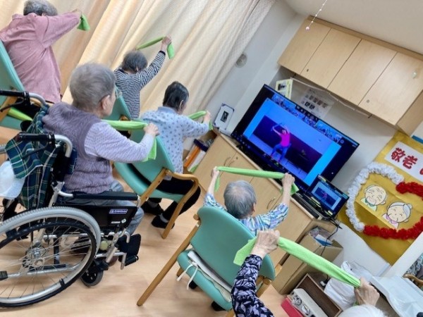 グループホームみんなの家・墨田では9/5日の2:00~リモートで2フロアー同時に「AK(タオル)体操」に参加しました。