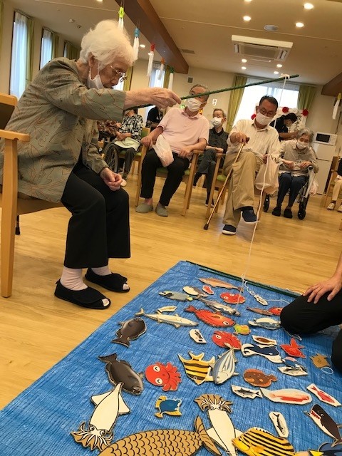 敬老会の余興として、8月に企画をしていた夏祭りのゲームをしました。