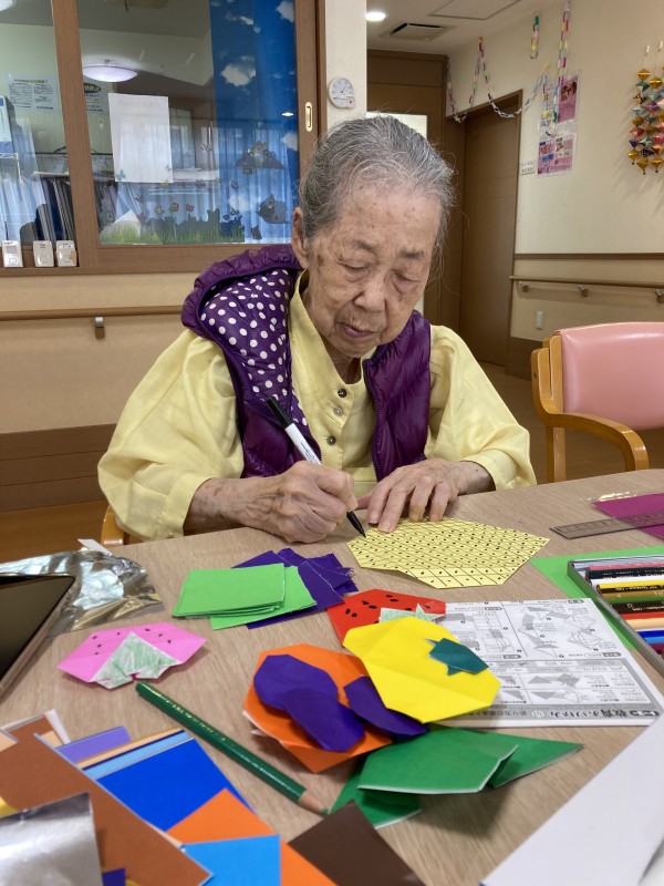 本日レクリエーションにて折り紙でフルーツを作りました(^O^)/