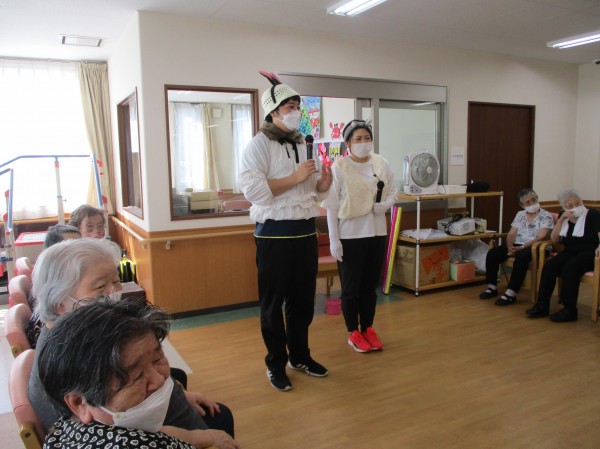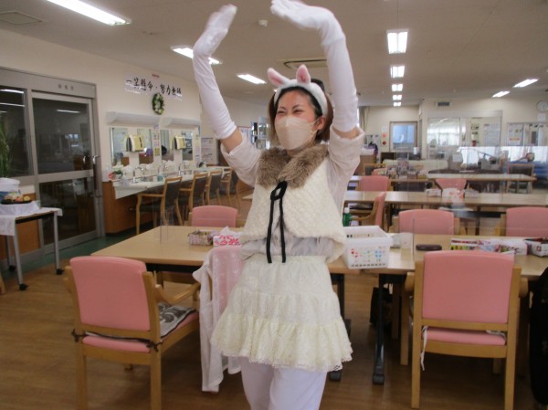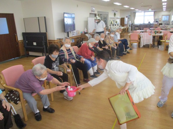 ご利用者様も一生懸命行い、職員はフラフープをしたり、うさぎ跳びをしたりと呼吸困難者続出でした(笑)