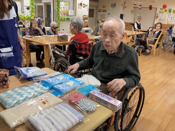 当たったご利用者様は、プレゼントの置かれている台まで進み、満面の笑みを浮かべながら品定め。