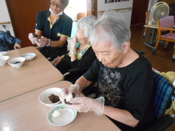 9月に2階でもおやつ作りで「おはぎ」を作りました。