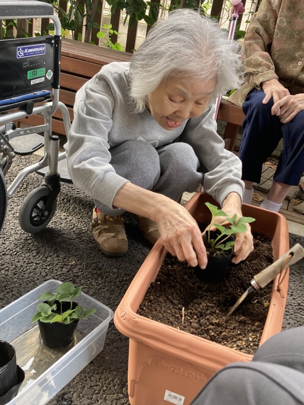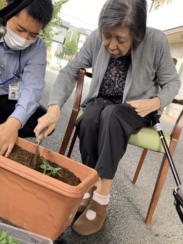 利用者様と一緒に新しい苗の植え替えを行いました(⋈◍>◡<◍)。✧♡