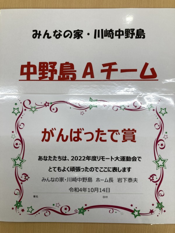 【みんなの家・川崎中野島】ALSOK介護で作るスポーツの秋~中野島だけの「表彰式」