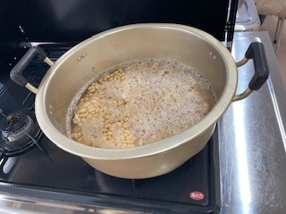皆さん、大豆を潰すことと空気を抜いて密閉することに苦労していました。