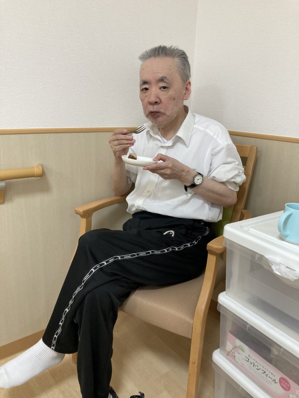 本日で82歳になられる方ですが、体操も積極的に参加されるお元気な方です。他入居者様とスタッフでハッピーバースデーを歌うと、「や、これはどうも」とにっこり笑顔。