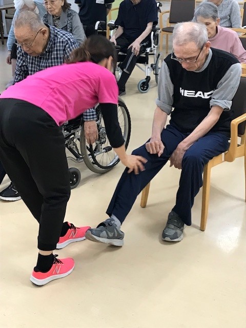 上の写真は高橋先生と職員の池田さんがリズムに合わせて体を動かせるようアプローチ!