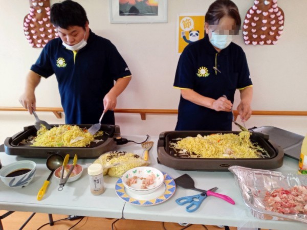 秋祭りでは各セグメントが出店を出しました。グループホームでは焼きそばを担当しました♪ホットプレートで140人前もの焼きそばを作り上げました!