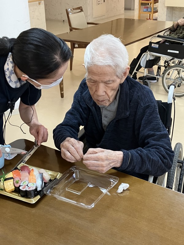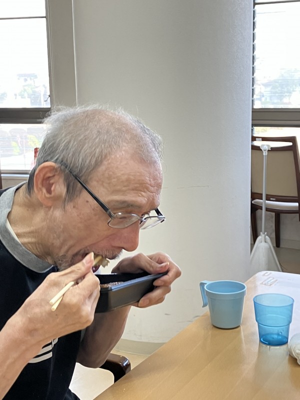 しっかり食べれるよう食事のメニュー、食べ物の位置はもちろんお茶やおしぼりの位置までご説明しています。