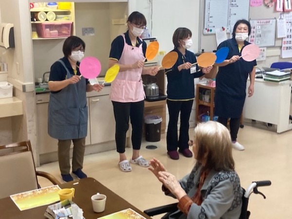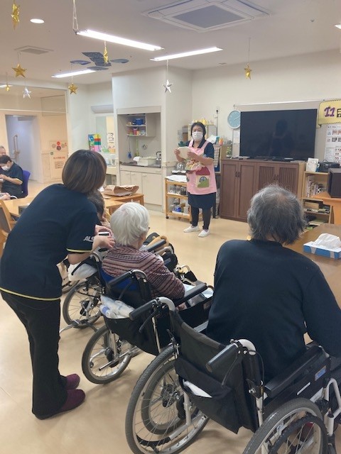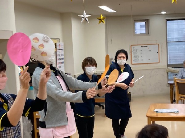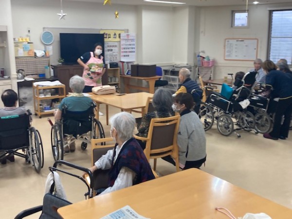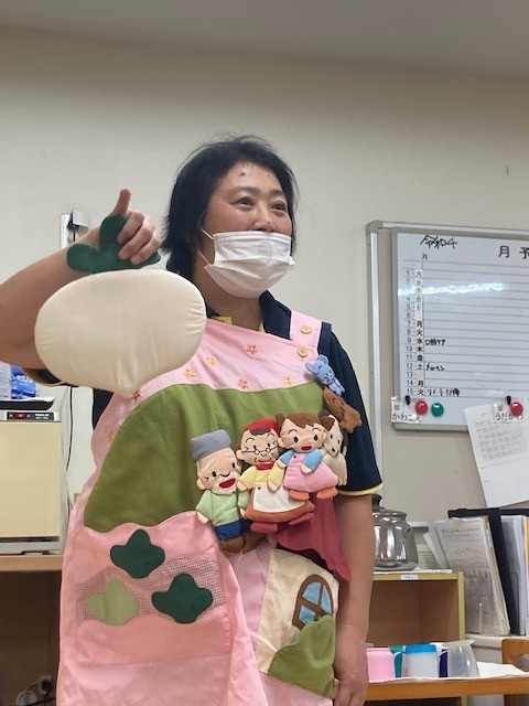先日から職員が用意していた秋の味覚と同時進行『みっちゃん劇場』:おおきなかぶ をお届けします~はじまりはじまり~