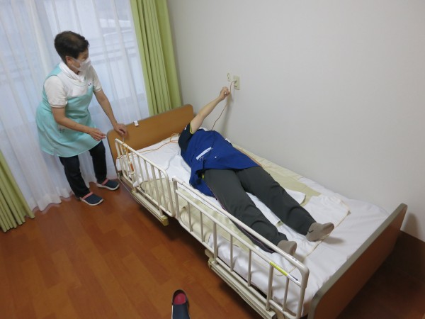 車椅子の操作が思っていたより難しいといった声やナースコールを置く場所を一緒に考えたりと内容の濃い研修になったと思います。