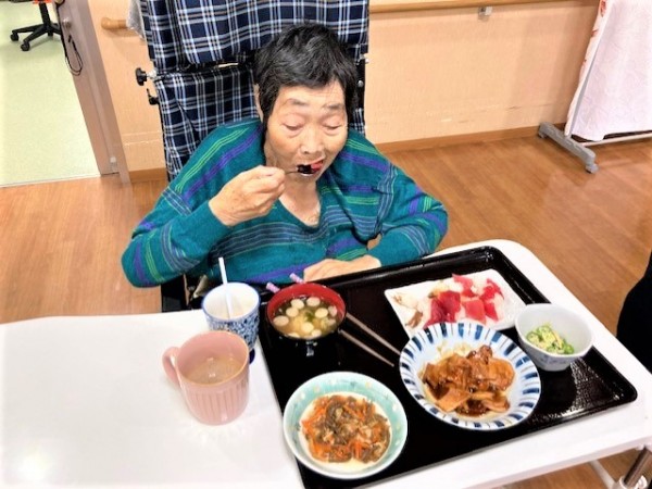 2階利用者様のお写真が撮れませんでしたが、普段白米スプーン2杯分位しか召し上がらない方も4カン残さず召し上がり「おいしかった」と喜ばれていたそうです。