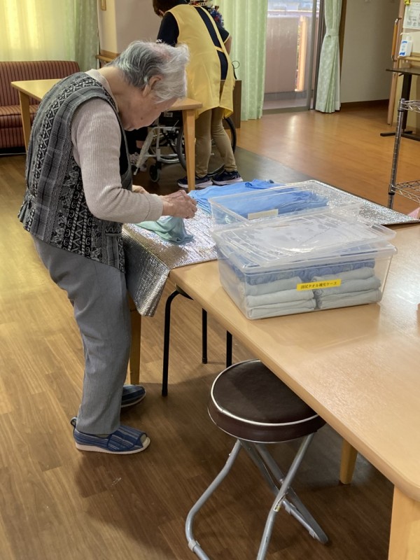 タオルを畳んだり、お話をしたり、歩行練習をしたり、
