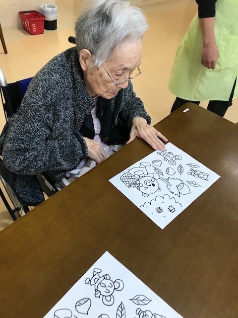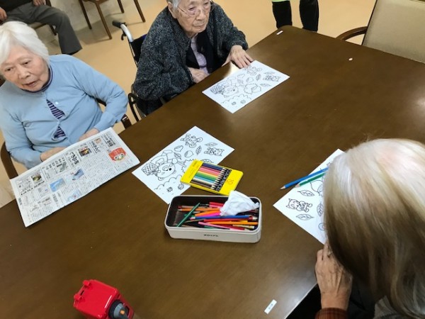 本日のレクリエーションは塗り絵だよ~3階で実施中~