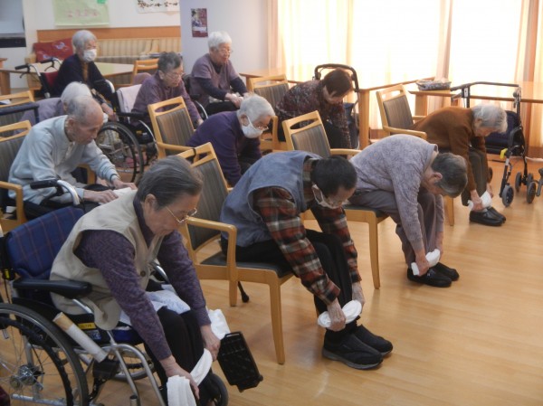 どこにでもあるタオルを使って、健康増進に向けた体操を行いました。