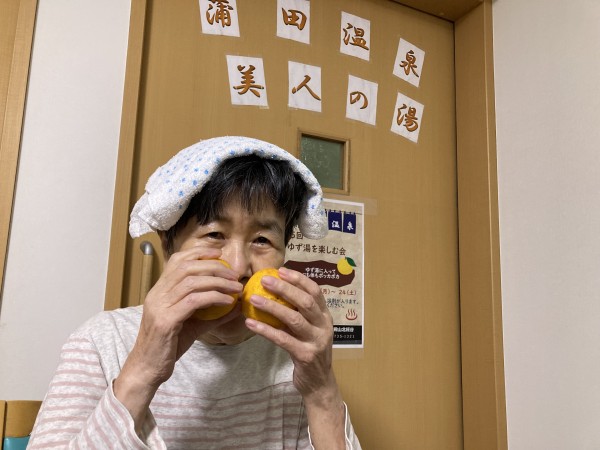 今年も冬至にはゆず湯で温まっていただきました。ゆずの香りっていいですよね。皆さんクンクン。『あら、ゆず??いい香りね、もう冬至ね~』なんてお話されていました。