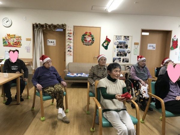 クリスマスという事も有り、ご利用者様もクリスマスの帽子を被って体操に参加されていました(#^.^#)