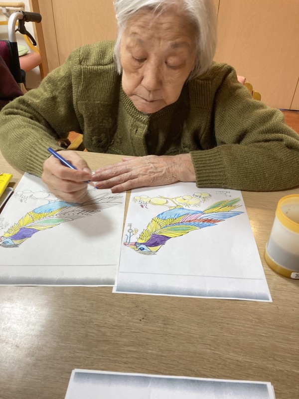 1階の皆さんはとても塗り絵が上手です!色塗りもとても鮮やかで、