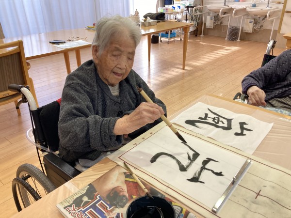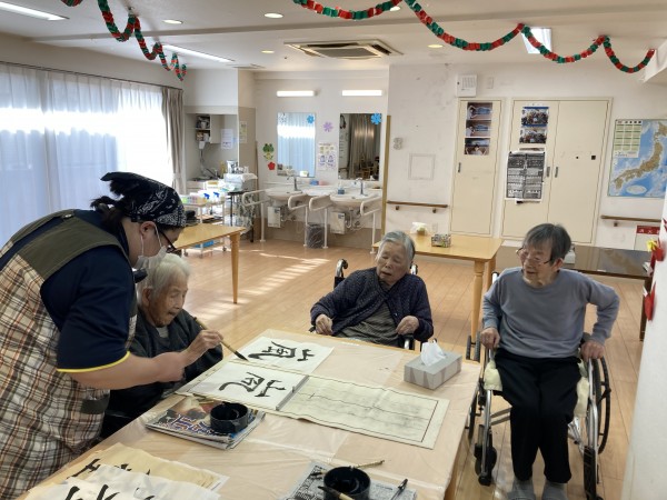 ★☆新年の書初め習字レクリエーション③階利用者様(^^♬ 『みんなの家・三橋6丁目・介護ブログ』☆★