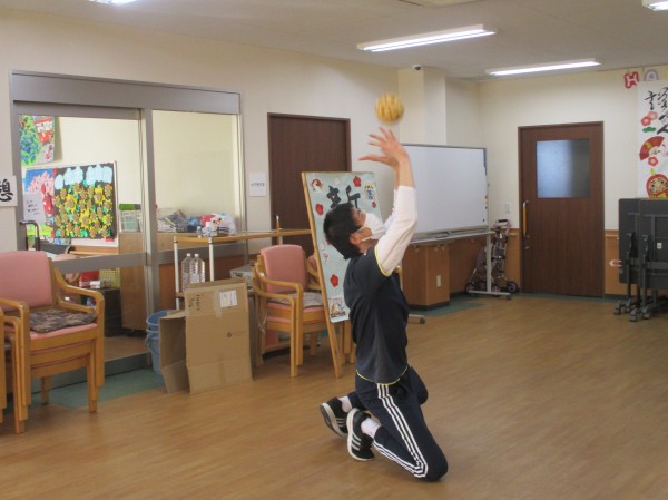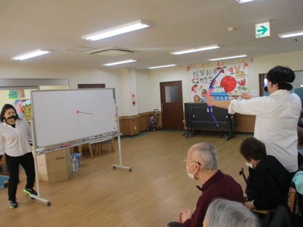 その後は、アーチェリーやお菓子を口でキャッチしたり、果物をくしで刺したりと様々な演目を行いました!!