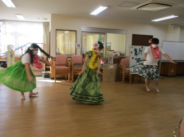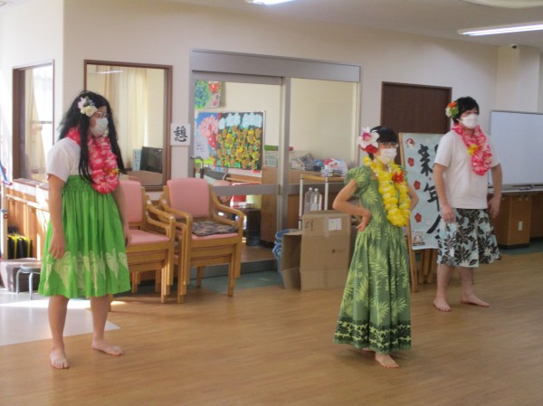 六番目は、三宅看護師、山﨑職員、秋葉職員によるフラダンス!