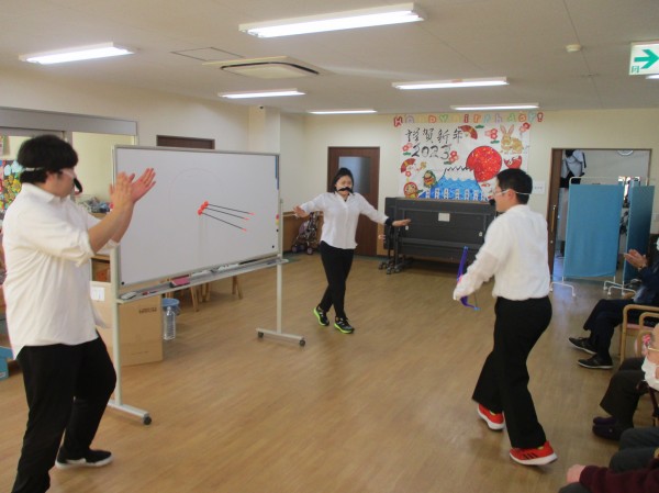 職員による一発芸が終わった後、次はひげダンスの始まり始まり!!!
