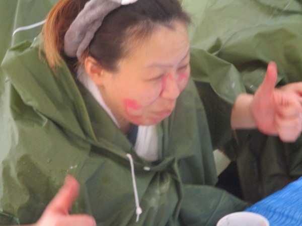 可愛くお化粧をして、おなかがすいたのでお蕎麦を食べたり、のどか乾いたので水を飲んだり、デザートにシュークリームをほおばり