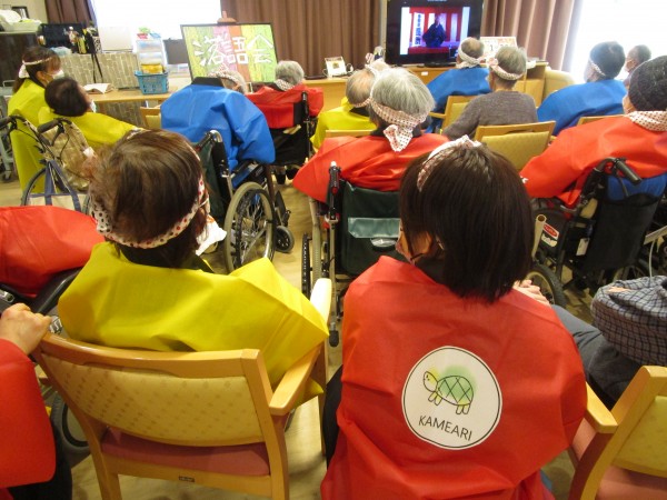 ご利用者の皆さま、スタッフ一同、みんなでお揃いのハッピ&ハチマキで集合(*^^)v