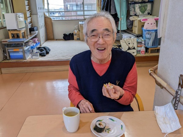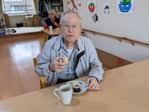 鬼退治の後は職員の手作り恵方巻を食べました。