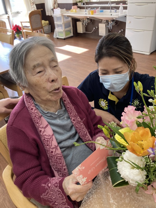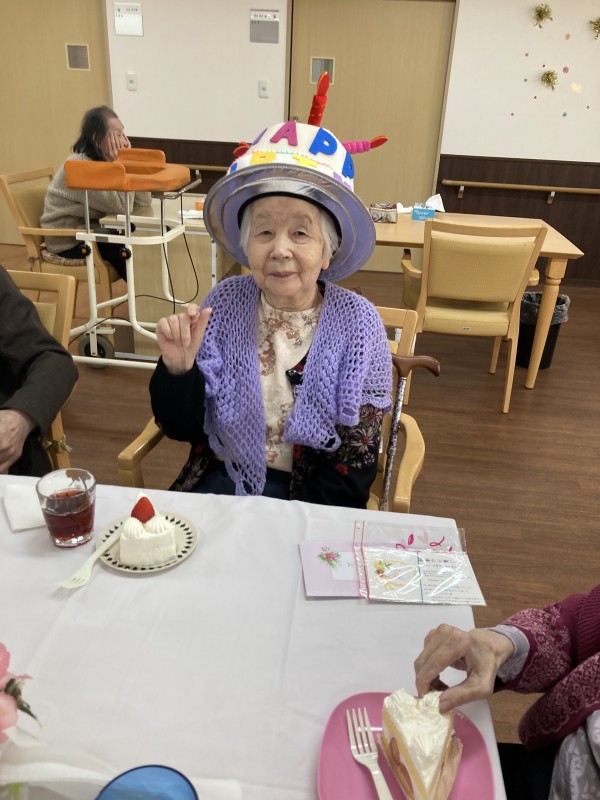 職員と皆さんで歌って、ケーキを食べながら