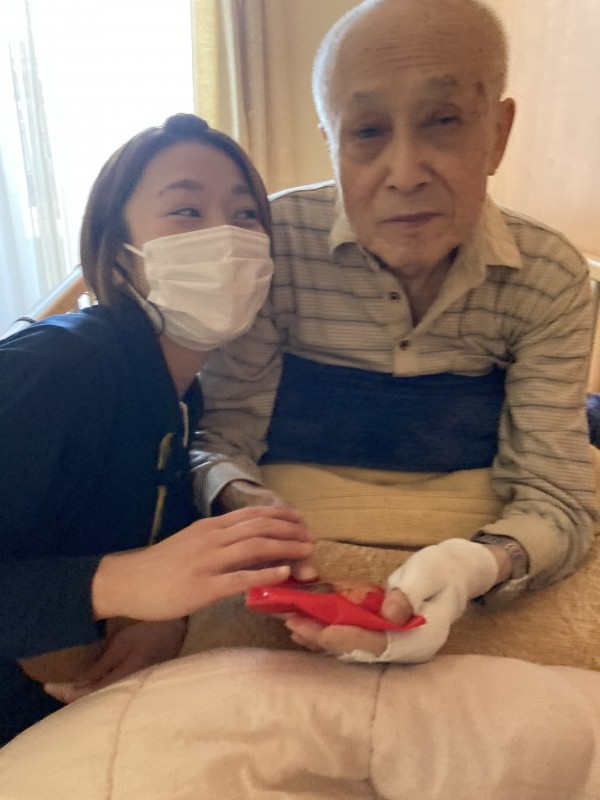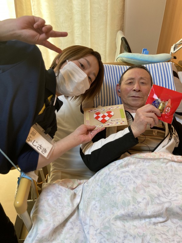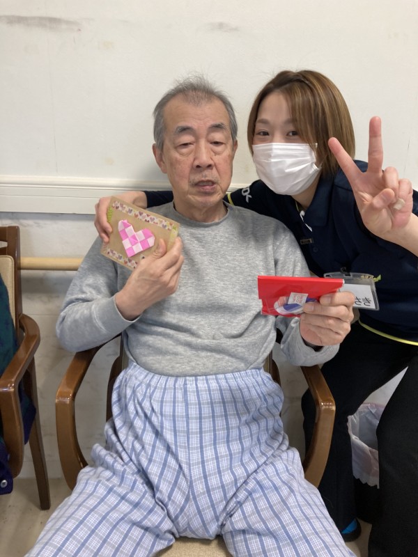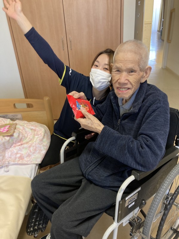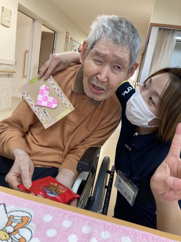チョコレートをもらうときのご入居者様の