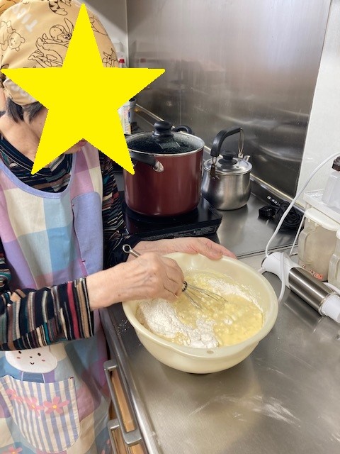 やはり皆さま、たまごの割り方がお上手で男性職員にご教授してくれました。