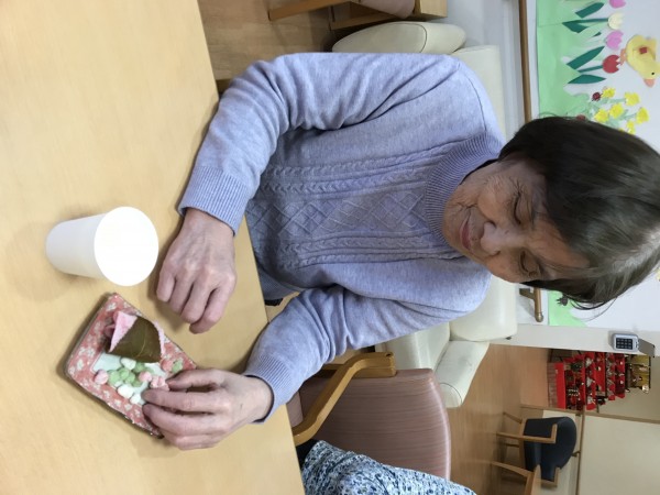 前回の記事にて、ひな壇の隣での撮影の後におやつを召し上がりました!事前に職員で相談して、甘酒と桜餅とひなあられをお出ししました♪「あら〜、おいしそう」との声も聞かれ、ゆっくりご歓談されながら召し上がりました♪イベントは変わりゆく季節を感じますね!笑顔が溢れる素敵なひなまつりの1日でした♪